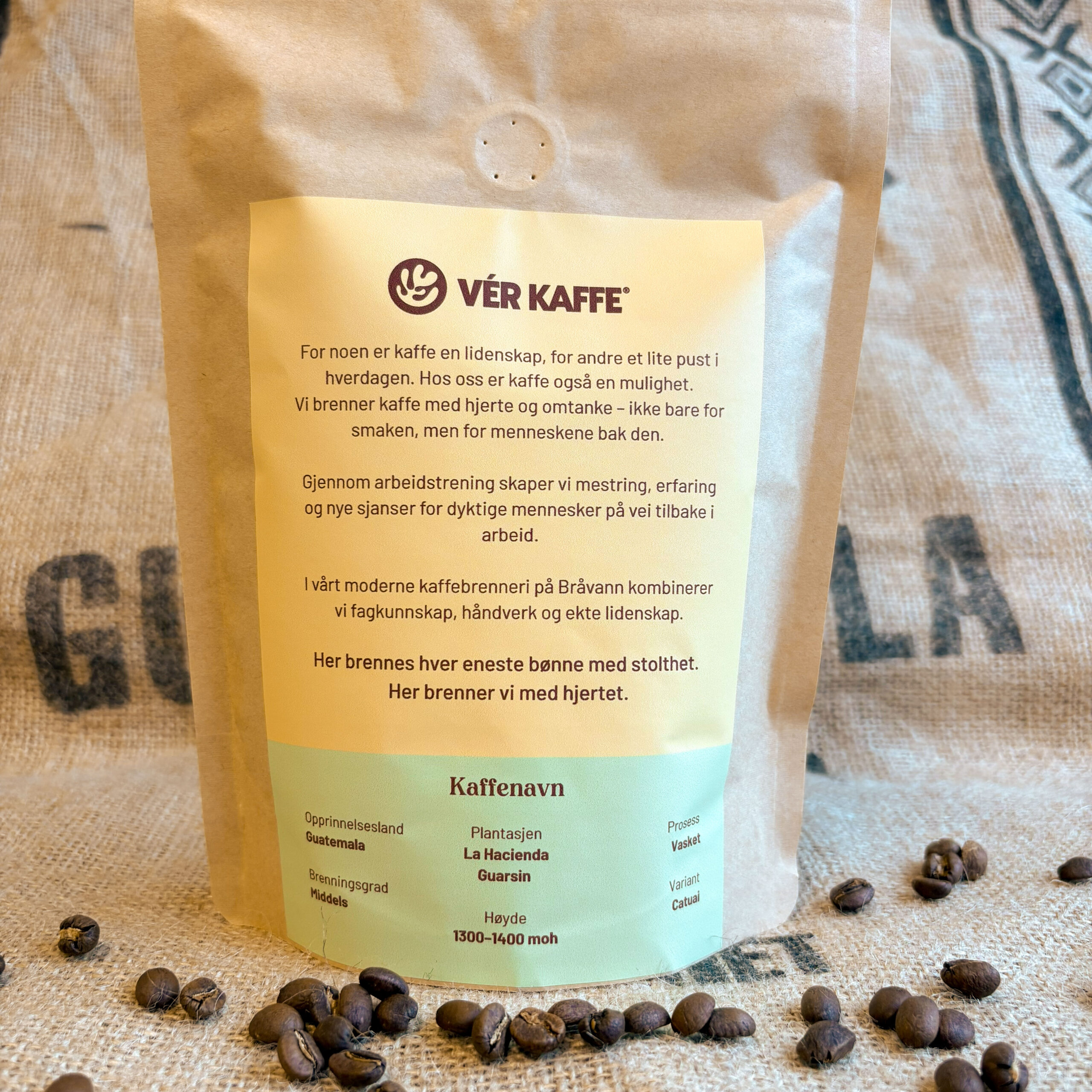 Vår kaffe er mer enn bare god smak. Den er håndbrent og pakket hos en arbeids- og inkluderingsbedrift, der mennesker får mulighet til å utvikle seg gjennom ekte arbeidsglede.